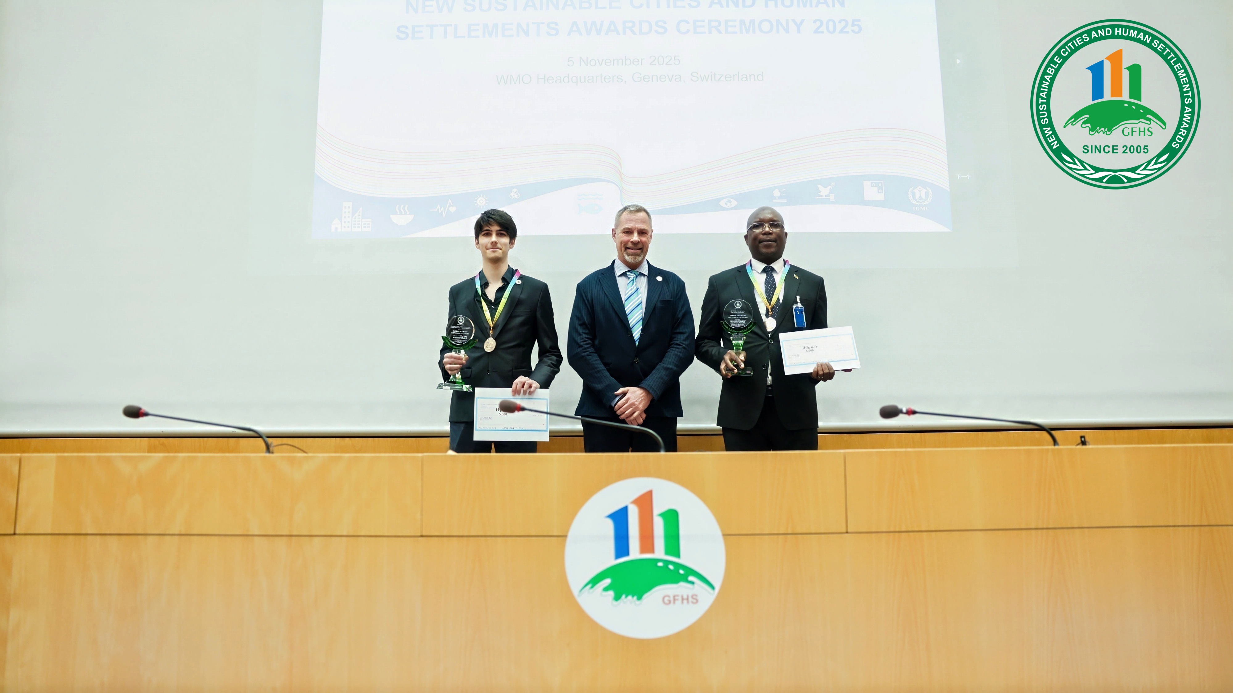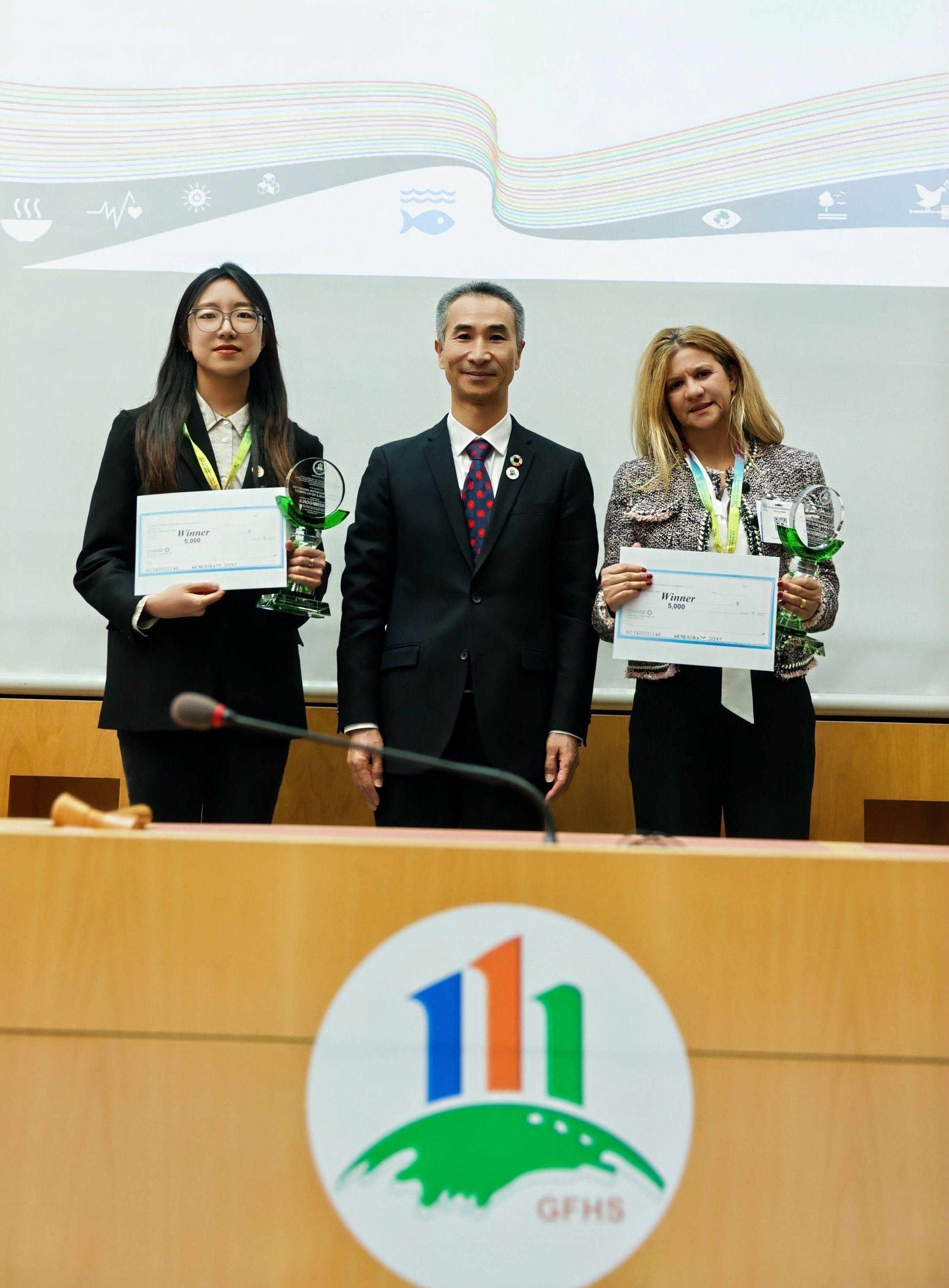 Reportedly, GFHS Secretariat received over 400 applications this year. After rigorous evaluation by the Jury, 36 finalists spanning 10 categories were selected, with 19 ultimately receiving the top honors. Winners were presented with green crystal trophies and cash prize, celebrating together in embraces. Senior officials from the United Nations and other international organizations attended the ceremony to present the awards and congratulate the awardees. The audience, brimming with enthusiasm, chanted "SCAHSA!" in rhythm with the host—cheering for the stars of sustainability and championing green initiatives. The sounds of eco-advocacy resonated across Lake Geneva, while the spirit of sustainability spread worldwide like a sweeping breeze.