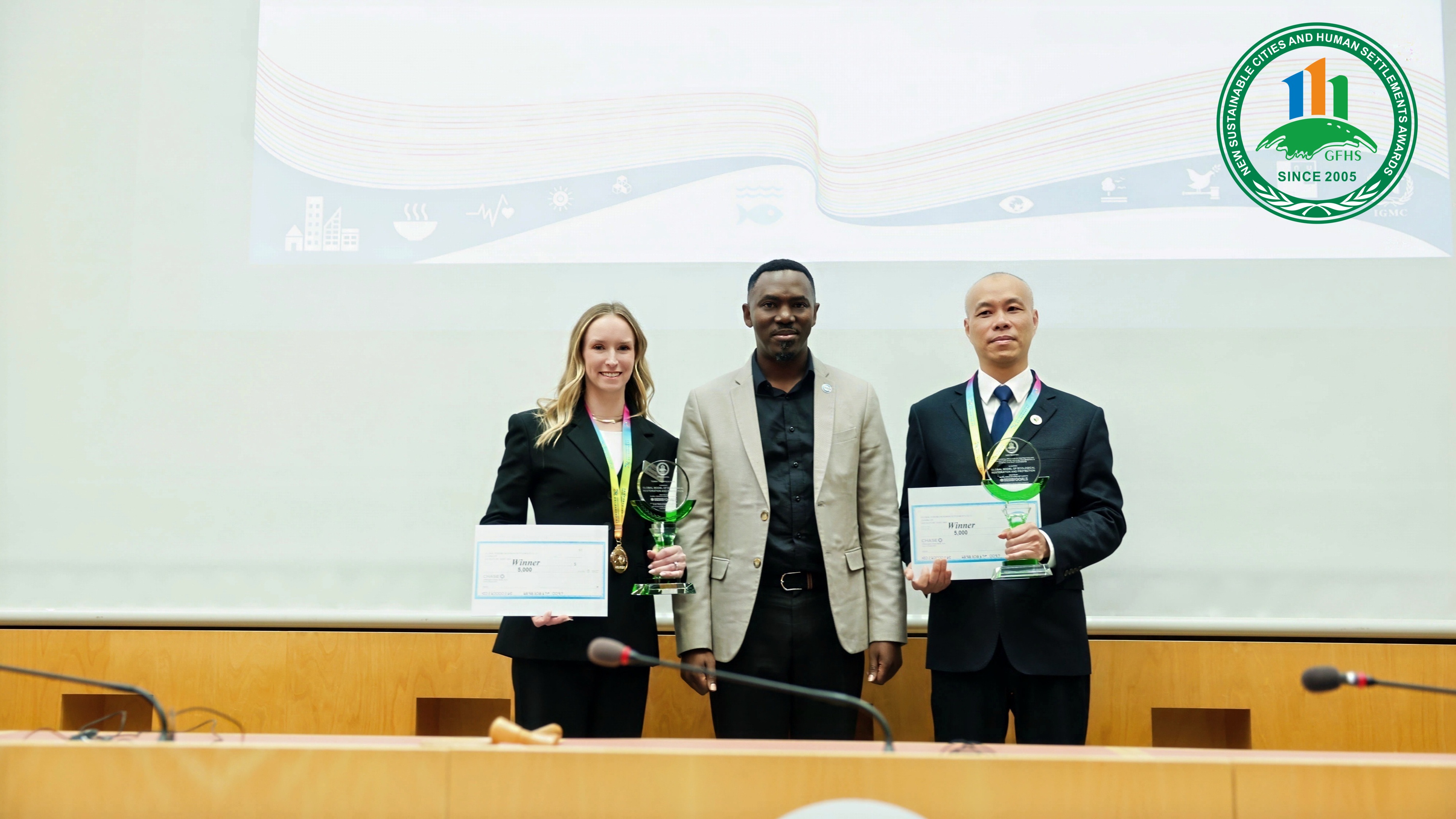 Distinguished award recipients include Chaoyang District, Beijing, China; Sino-Singapore Tianjin Eco-City; Budapest, Hungary; Penang Island, Malaysia; Innovative Practices in Low-Carbon Development and Urban Regeneration at the Shanghai World Expo Park; Suzhou High-Speed Rail New Town Urban and Rural Construction Carbon Peaking and Carbon Neutrality Pilot Zone; Wonderwoods Vertical Forest, the Netherlands; Zambezi and Victoria Falls National Park, Zimbabwe; Tommy Thompson Park, Canada; AMP ONE Municipal Solid Waste Processing System, United States, among others.